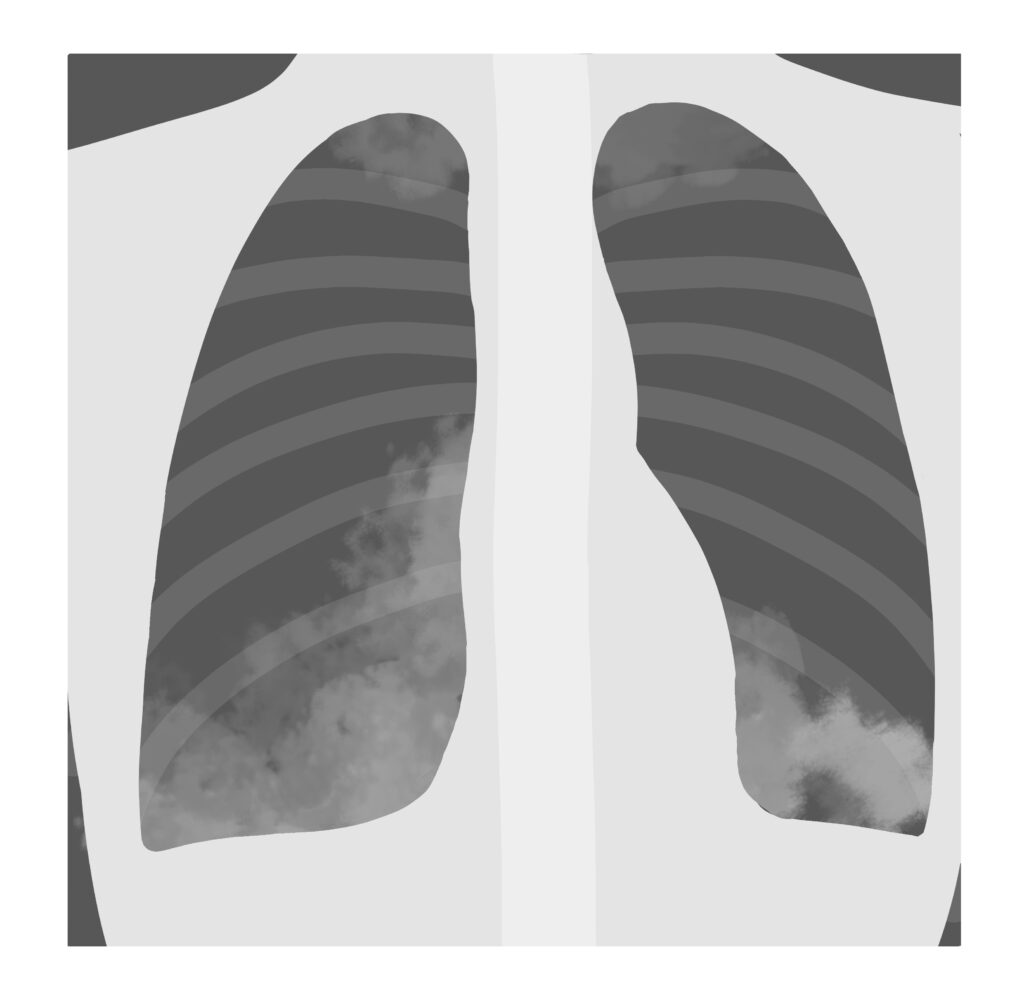 呼吸の苦しさに加え、咳や痰の症状による多重の苦しさが生じます。